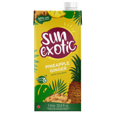 Dive into a delicious adventure with refreshing Sun Exotic Pineapple Ginger juice drink! Picture the tangy sweetness of pineapple mingling with the zesty kick of ginger, creating a flavour explosion that'll make your taste buds dance with joy. With 50% less sugar and calories, and no added sugar, you can enjoy this indulgent experience guilt-free.