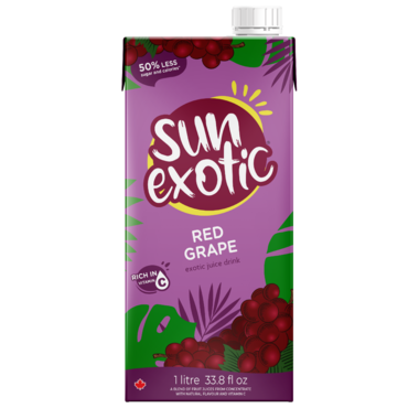 Escape to the Caribbean with Sun Exotic Red Grape juice drink. Delight in the pure, rich essence of the finest red grapesan explosion of sweet and tangy flavours that will leave you craving more with each sip. Experience a taste of paradise with each refreshing glass. With 50% less sugar and calories, and no added sugar, you can enjoy this indulgent experience guilt-free.