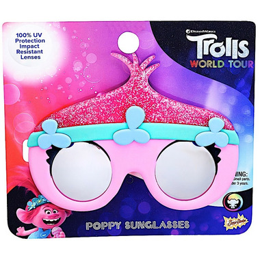 Stay true to yourself and dance to your own tune with a pair of Trolls Poppy Lil' Characters Sun-Staches. This pretty princess loves nothing more than singing and spreading joy with her fellow trolls. Featuring her tall pink hair and a flower band, these stylish shades were made for having fun in the sun. Great for young Trolls and made for fun in the sun. These aren't just sunglasses, they're Sun-Staches!
