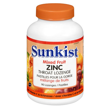 Sunkist Zinc Throat Lozenges combines immune-boosting antioxidant mineral zinc with antioxidant vitamin C and echinacea for immune system support that helps prevent and relieve sore throats due to infection.