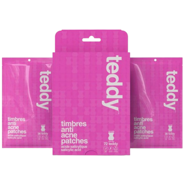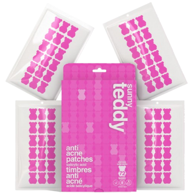72 Pink Teddies Anti-acne Patches made with Salicylic Acid. Made to reduce the appearance of inflammation, to shrink spots overnight.
