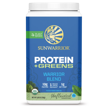 Sunwarrior - PROTEIN + PLUS GREENS -Warrior Blend - Unflavoured Plant yourself in the center of nutrition! Support your muscles with clean protein and alkalize your cells with greens to fuel your body through your busiest days. Its high quality, clean energy, and optimal sustenance all in one scoop.