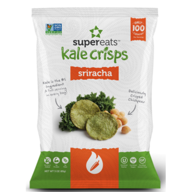 Ingredients: Kale, Chickpeas, Rice Flour, Lentils, Tapioca Starch, Sunflower Oil, Sea Salt, Non GMO Sriracha Seasoning (Vinegar Powder (Maltodextrin, White Distilled Vinegar), Salt, Red Bell Pepper Powder, Cane Sugar, Garlic Powder, Jalapeno Pepper Powder, Natural Extractives of Paprika, Natural Flavor)