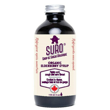 Suro Organic Elderberry Syrup is made with organic Canadian elderberries, extracts of elderflowers, propolis, echinacea* and raw honey. Traditionally used to help fight colds and the flu. Use it when you have cough, sore throat, fever or congestion. Also contains propolis, elderflower and echinacea tinctures with Canadian raw honey.