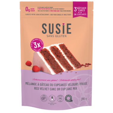 Potato Starch, White Rice Flour, Brown Rice Flour, Tapioca Starch, Cocoa, Baking Powder, Sorghum Flour, Sea Salt, Xanthan Gum, Baking Soda, Vanilla, Allura Red.