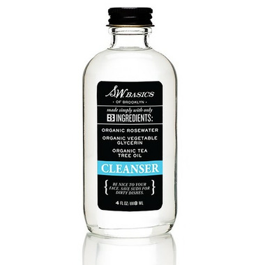 S.W. Basics of Brooklyn Cleanser is about as simple as you can get. It's perfect for problem and sensitive skin. It’s gentle, non-drying, and contains no alcohol. Plus it's USDA Certified Organic. Plus it smells awesome. This simple recipe starts with a traditional organic rosewater-and-glycerin base and then a tiny bit of organic tea tree oil is added. That's it. No soap, no alcohol, no para-sulfate-whatchamacallits.