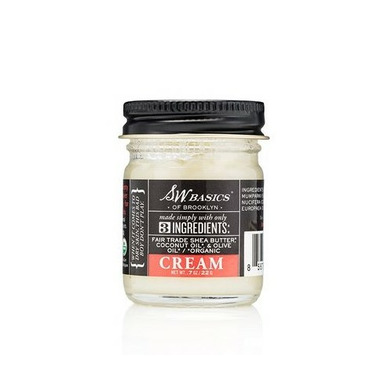The S.W. Basics of Brooklyn Cream is the mother of all S.W. Basics products. You know how lots of lotions and moisturizers leave you needing more, like ten minutes after you put them on? That's because they use water as a base. When it evaporates, you dry out all over again. This USDA Certified Organic Cream starts with wild-harvested, organic shea butter sourced from an incredible Fair Trade women's cooperative in Ghana. Some organic extra-virgin coconut oil and organic extra-virgin olive oil is added. That's it. So it's extremely rich, sinking deep into the skin and staying there. And it's just as awesome on your face as it is on your body.