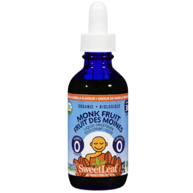 SweetLeaf Monk Fruit Vanilla Drops is a liquid sweetener with 0 sugar and 0 calories.