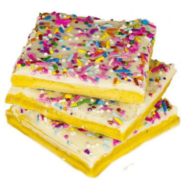 Ingredients: Cane sugar, corn glucose, white chocolate (contains: Sugar, Sustainable Palm Kernel Oil, and/ or coconut oil, Nonfat Dry Milk, Milk Powder, Soy Lecithin (an Emulsifier), Vanillin), Sprinkles (icing sugar, fractionated palm kernel oil, corn starch, glucose, soya lecithin, FD&C artificial colour, gum arabic, carnauba wax, HPMC, propylene glycol, mica, titanium dioxide), sodium bicarbonate.