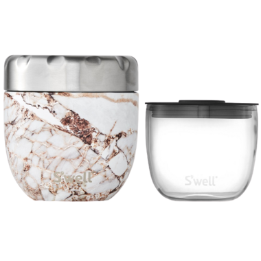 2-in-1 Nesting Food Bowl, 473 ml (16 oz), Calcatta gold. S’well Eats™ fuels all your food needs in easy, eco-friendly fashion. Simply prep, nest, go—and eat! Built to keep fresh meals cold and hot longer, perfect for plan-ahead types and leftover lovers alike. The 296 ml (10 oz) durable see-thru Tritan™ inner prep bowl with a leak-proof, pop-top lid nests inside the exterior bowl and is marked with convenient measurements for accurate portioning.  By choosing re-usable S'well you can help reduce the use of single-use plastic products that pose a threat to our environment.