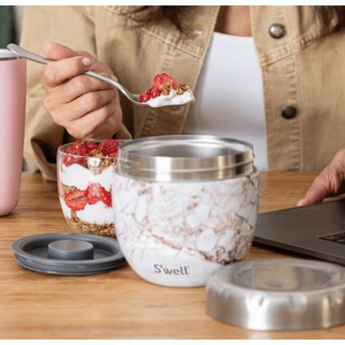 S’well Eats fuels all your food needs in easy, eco-friendly fashion. Simply prep, nest, go - and eat! Built to keep fresh meals cold and hot longer, perfect for plan-ahead types and leftover lovers alike. Here, there, and everywhere you use it, this one-of-a-kind, 2-in-1 food bowl is a stylish, sustainable solution for everyday eating. Likely to inspire second glances during your commute, “desk envy” at the office, and oohs and aahs on the picnic blanket and beyond.