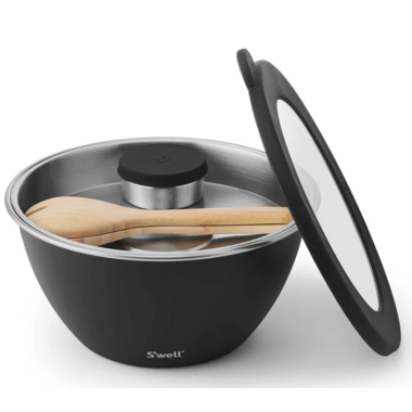 Take your hosting to the next level with the S'well Salad Bowl Kit XL. Complete with a Canister, removable tray, and bamboo serving utensils, it’s perfect for hosting at home or transporting salads, pasta salads, cold dips, fruit, and more to parties.
