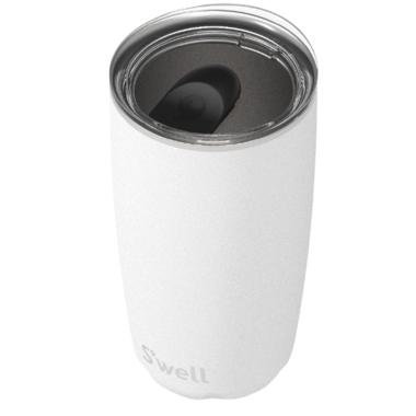 Tumbler, with slide-open lid, 530 ml (18 oz), moonstone. S'well Tumblers feature Therma-S'well™ technology - a triple-layered, vacuum-insulated construction made of high quality, 18/8, food-grade stainless steel walls plus a copper wall layer for superior temperature retention.  It means that beverages will stay cold for up to 17 hours and hot for up to 4, while maintaining a condensation-free exterior. The 530 ml (18oz) tumblers are perfect for on-the-go drinking, featuring a slide-open lid meant to create a splash-proof experience.  By choosing re-usable S'well bottles you can help reduce the use of single-use plastic products that pose a threat to our environment.