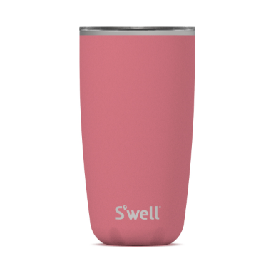 S'well Tumbler, with slide-open lid, 530 ml (18 oz), coral reef. S'well Tumblers feature Therma-S'well™ technology - a triple-layered, vacuum-insulated construction made of high quality, 18/8, food-grade stainless steel walls plus a copper wall layer for superior temperature retention.  It means that beverages will stay cold for up to 17 hours and hot for up to 4, while maintaining a condensation-free exterior. The 530 ml (18oz) tumblers are perfect for on-the-go drinking, featuring a slide-open lid meant to create a splash-proof experience.  By choosing re-usable S'well bottles you can help reduce the use of single-use plastic products that pose a threat to our environment.