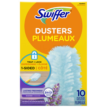 Swiffer Dusters TRAP + LOCK dust & allergens. Made with specially coated fibers that grab onto dust & don't let go. They are uniquely designed to Trap + Lock dust from even the tight spaces in your home.
