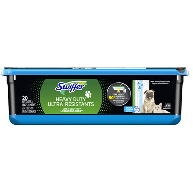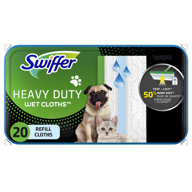 Swiffer Sweeper Heavy Duty Pet Wet cloths have a built-in dirt magnet strip to make cleaning dirt and paw prints easy. Dirt and pet messes get trapped and locked deep into the pad. It’s a quick and convenient way to keep up your floors, and your pets!