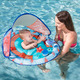 Designed to provide a more comfortable and secure water introduction experience, the Baby Spring Float is the only pool float for babies with a patented inner spring sewn into the float all along the edge of the outermost inflation chamber underneath the fabric cover. This spring adds stability to the float in the water, giving parents an added peace of mind. The removable sun canopy offers a shady spot with UPF 50+ sun protection, and the mesh sides of the canopy allow you to maintain eye contact with your baby at every angle. The brightly coloured inflatable baby float has fabric-covered inflation for added durability and a soft mesh seat with leg holes for comfort. A wide base, child safety valves, and dual air chambers ensure security.