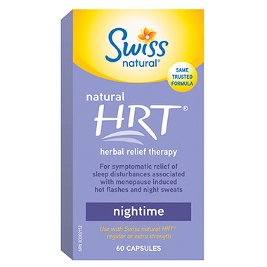 Swiss Natural Herbal Relief Therapy (HRT) has naturally sourced and clinically proven ingredients like Black Cohosh, Chaste Tree Berry, Dong Quai, Burdock and Wild Yam that help relieve menopausal symptoms such as hot flashes and night sweats, while also easing tension, restlessness and anxiety associated with sleep disturbances.