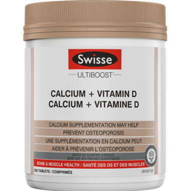 Swisse Ultiboost Calcium + Vitamin D is a premium quality formula t support the development and maintenance of healthy, strong bones and teeth. Adequate calcium and vitamin D intake as part of a healthy diet, may help prevent bone loss/osteoporosis.