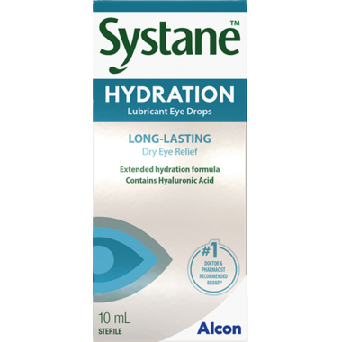 Long-lasting dry eye relief with dual-action hydration. Because life is too busy to let dry eyes hold you back, keep Systane HYDRATION on standby. Feel unstoppable every day with this advanced hydration formula, a unique combination of HP-Guar & Hyaluronic acid proven to deliver LONG-LASTING relief.