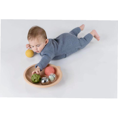 Designed to make tummy time more engaging and beneficial for babies, the rounded base gently sways with the baby's touch, encouraging movement and exploration. This interactive tray features 5 sensory balls, each uniquely designed to enhance tactile stimulation, fine motor skills, and cause-and-effect learning.