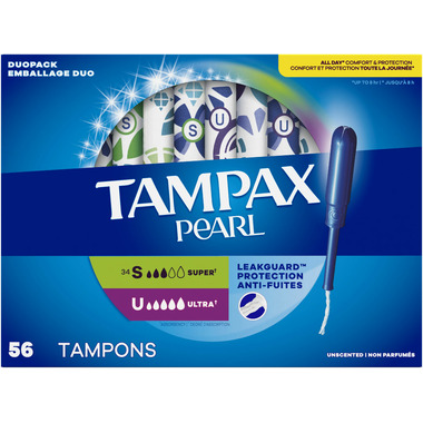 Its time to Tampax and live your life without limits. Get incredible all day comfort and protection for up to eight hours with Tampax Pearl tampons. Choose from five different absorbencies to match your changing flow. Got leaks? Go up an absorbency. Uncomfortable to remove? Go down an absorbency. Designed with a LeakGuard Braid to help stop leaks before they happen. Tampax Pearl Super/Ultra Absorbency provides protection you can feel good about. Free of dyes, perfume, latex*, BPA, and elemental chlorine bleaching. Plus, inserting the tampon is made easy thanks to the applicator's Anti-Slip Grip, while Tampax FormFit protection lets it gently expand to your individual shape.