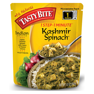 Ingredients: Spinach, Tomatoes, Onions, Paneer Cheese, Water, Sunflower Oil, Salt, Garlic, Cornstarch, Yeast Extract, Ginger, Chili Peppers, Cumin.