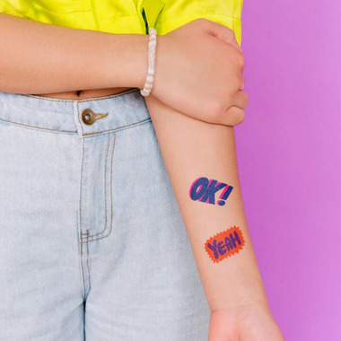 tin and paper belly band. Each Tiny Tin comes with 10 tattoos and a