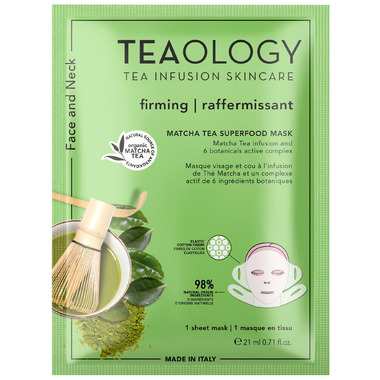 A beauty infusion for the skin. This soft mask in elastic cotton fibers adheres perfectly to the face and neck delivering a triple action: it prevents the active ingredients from evaporating, helps them absorb in just 10 minutes and sculpts the face contour. Its formula is a concentrate of their patented antioxidant and anti-pollution tested matcha tea infusion, an ultra-firming peptide complex, acmella oleracea with a lifting effect, niacinamide and molecular hyaluronic acid to nourish and hydrate the skin.