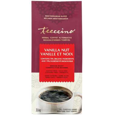 A vanilla nut herbal 'coffee' alternative that contains 75% organic ingredients.