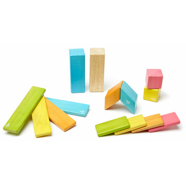 Every Tegu piece is designed to work together regardless of colour, set, shape or theme. Little builders can confidently grow their collection as their buildings get taller, their canyons wider, and the unicorns bigger.