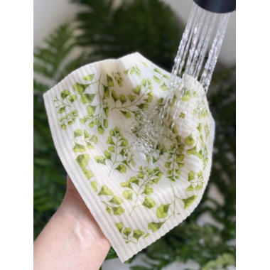 SPONGE CLOTH: With a bright and fresh design, this Swedish Sponge Cloth is sure to brighten up your kitchen and your day! The sponge cloth has been a staple in Swedish kitchens for over 60 years and can absorb 15x its own weight in liquid (up to 3/4 of a cup). Sponge cloths replace the use of up to 17 rolls of paper towel, reducing the plastic packaging and overall waste in landfills. These eco-friendly sponge cloths will clean all kitchen and bath surfaces without streaking. Great for granite, stainless steel, laminate and glass top stoves. The cellulose (wood pulp) - cotton composition is 100% biodegradable and can be thrown away with compostable waste. The cloth is naturally anti-bacterial due to its quick drying ability which means no 'dish cloth' smell!