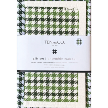 Ten & Co. Ten & Co. Gift Set Dishcloth + Tea Towel Plaid Green