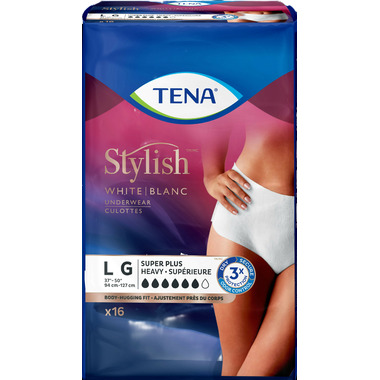Featuring a stylish, cottony-soft fabric, TENA Stylish Super Plus Heavy Incontinence Underwear is form fitting and designed to look and feel like regular underwear with triple protection against bladder leaks, urine odor, and wetness and Super Plus absorbency for moderate to heavy bladder leakage. This underwear can be easily pulled on and off and has tear-away sides for efficient removal.