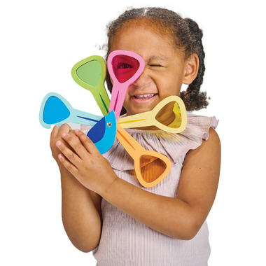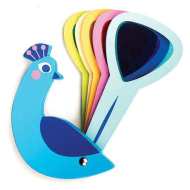 See the world in different colors, or mix the colors to create as many color combinations as you like! This peacock has 5 tail feathers with colored acrylic windows and they can be opened and closed like a real peacock. A great toy for children to learn about colors and colour mixing.