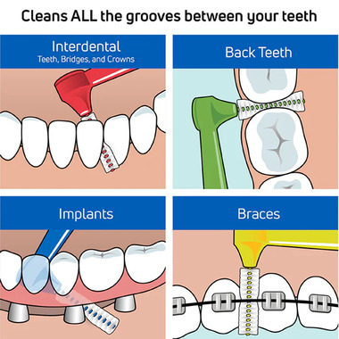 Directions: Turn the brush slightly when inserting between the teeth. Move the brush back and forth a few times. Curve slightly for use between back teeth. Rinse the brush both during and after use. Use daily, change when worn. Never force the brush into a space.