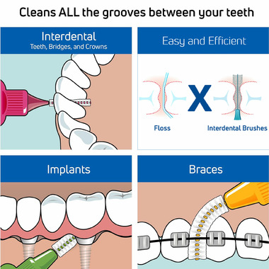 Directions: Turn the brush slightly when inserting between the teeth. Move the brush back and forth a few times. Curve slightly for use between back teeth. Rinse the brush both during and after use. Use daily, change when worn. Never force the brush into a space.