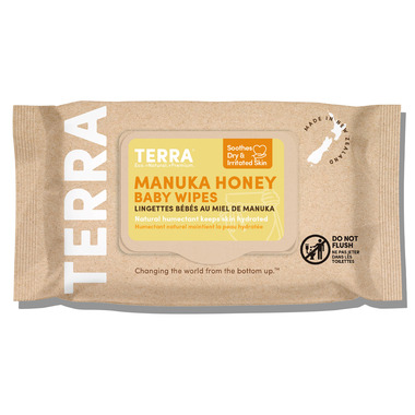 Terra Bamboo Manuka Honey Baby Wipes. 100% Biodegradable bamboo fiber. 99.7% Pure New Zealand Water. Absolutely no harmful chemicals or unwanted ingredients, packed to the brim with moisture, and perfect for delicate, sensitive skin. Using crystal clear New Zealand water, our wipes provide a naturally simple, yet nourishing cleanse for your baby. Complemented with soothing Aloe Vera and Vitamin E, these wipes are perfect for sensitive skin. All our products go through intensive testing so that you can be sure that Terra pure water wipes are one of the purest and most natural wipes you will ever use.