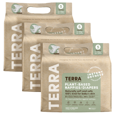 - 3 x TERRA Plant Based Diapers Size 5 Walker (16ct)