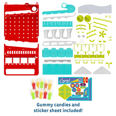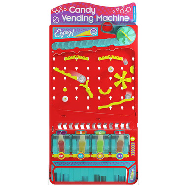 Ever dreamed of having a vending machine in your room? With this engineering kit, you can build and experiment with your own toy vending machine. First, follow the step-by-step instructions to assemble the machine. Then test and configure it to get it working perfectly. Load your vending machine with the included soda-bottle gummy candies or any other small candies or prizes you supply, and youre in business! Insert some coins and have fun watching them get sorted, perform stunts as they slide down the tracks, dispense prizes, and finally end up in the coin bank in the base of the machine. This awesome vending machine has four main interactive segments: First, you insert coins (quarters, dimes, nickels, and pennies) into the slot at the top and turn a knob to sort the coins. Then, the coins fall into an interactive coin track area where they slide down ramps, make jumps, and ring bells. Next, the coins fall into a device that allows you to make your ғpurchase with the push of a button. Finally, your prize pops out of the machine, and the coin falls into the bank, sorted into neat stacks by denomination. The vending machine can sit on a tabletop or hang on a wall. A small key allows you to access the vending machine compartments for refilling the prizes. Explore lessons in physics, math, and mechanical engineering as you build and play with the vending machine. Learn about gears and other simple machines, gravity, forces, motion, and collisions. Try some simple math lessons related to the coins and money. Soda-bottle gummy candies included! Have fun engineering a vending machine Make coins do fun stunts and tricks and learn physics lessons Automatic coin-sorting bank Pretend-play vending machine experience Stands up on a tabletop or hangs on a wall Build your own toy vending machine that sorts coins, dispenses candy or other small prizes, and doubles as a coin bank. Experiment to make the coins perform cool tricks and stunts in the customizable coin track area. Learn about gears, gravity, forces, motion, collisions, and more ԗ even some simple math lessons with money. Fun, gamified approach to engineering lessons with a sweet candy reward Refill your machine with your own treats and prizes for long-lasting fun. Insert your coins, turn the knob, make your selection, and out comes candy AND STEM fun and learning!