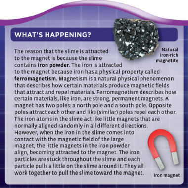 Mix up a batch of slime that reacts to a magnet. Ooze Labs are fun and simple science experiments in big chunky plastic test tubes! Each Ooze Lab tube contains a simple science experiment to create a safe material that is both fun to play with and chemically interesting.