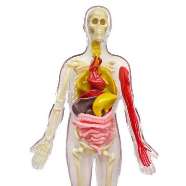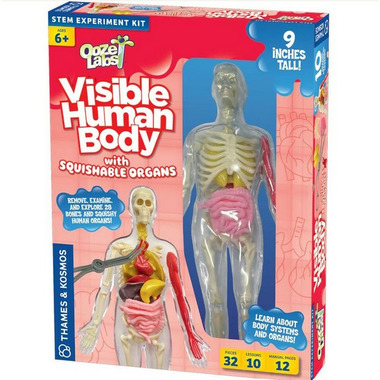 See inside a nine-inch-tall human body model. Examine human anatomy Includes toy forceps so you can remove, examine, and explore 28 bones and squishy human organs! Learn about the body systems and organs.