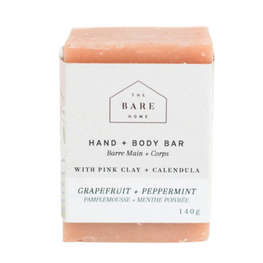 The Bare Home Pink Clay Hand + Body Bar Soap Grapefruit + Peppermint