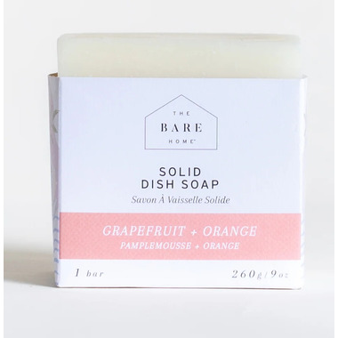 The Bare Home's Solid Dish Soap makes the perfect addition to your dish washing routine! The plant powered suds are tough enough to cut stubborn grease and baked on food. Made with olive and coconut oils and scented with grapefruit + orange essential oils.