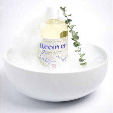 A bubble bath with essential oils? Yes, please! Recover Bubbles are made with eucalyptus and cedar wood essential oils, aloe botanicals and enriched with vitamin E. These SLS-free bubbles relax your mind body and soul without any harsh chemicals.