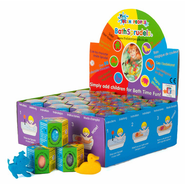 Triple Treats! Bath Sprudels create more fun at bath time! The Sprudel fizzes, slowly releasing a lovely fragrance into the air as it colours the bath water. Hidden inside the Sprudel is a cute sponge Bean character. Children can also learn about colour mixing by placing 2 primary colour Sprudels in the bath at the same time. And mums, they won't stain your bath (or your children!!)