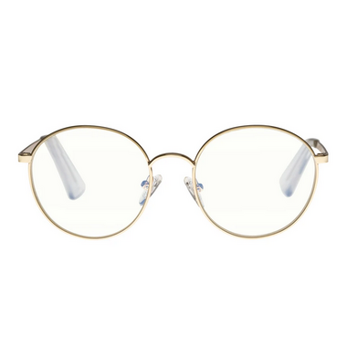 Bothering sights is your classic round metal frame in gold metal with cellophane clear tips, this guy is an any-gender wonder eyeglass. Blocks 30% of blue light emitted from screens from reaching our eyes. This has been shown to help reduce the effects Digital Eye Strain.