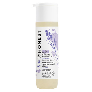 The Honest Company Shampoo & Body Wash with lavender essential oil calms and relaxes you senses.  The aloe, chamomile and calendula gently soothe and nourish, while coconut oil, jojoba protein, and quinoa extract moisturize and soften skin.  Perfectly pH balanced to cleanse without over-drying.  No harsh chemicals or synthetic fragrances.  Super versatile.  Super easy.  Super safe!