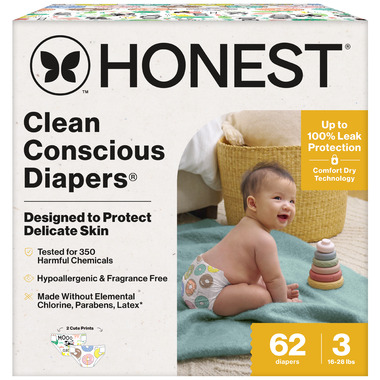 Clean Conscious Diapers are designed with safe plant-based materials, a wetness indicator (so you know when its time for a fresh one), enhanced blowout protection and advanced absorption for dry, healthy baby skin. No latex, fragrance or parabens. The diapers are less bulky but more sustainable, helping save over 7,000 trees a year.