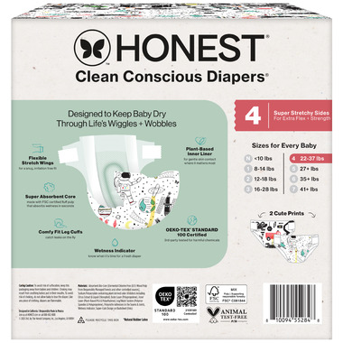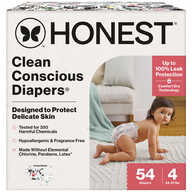 Clean Conscious Diapers are designed with safe plant-based materials, a wetness indicator (so you know when its time for a fresh one), enhanced blowout protection and advanced absorption for dry, healthy baby skin. No latex, fragrance or parabens. The diapers are less bulky but more sustainable, helping save over 7,000 trees a year.